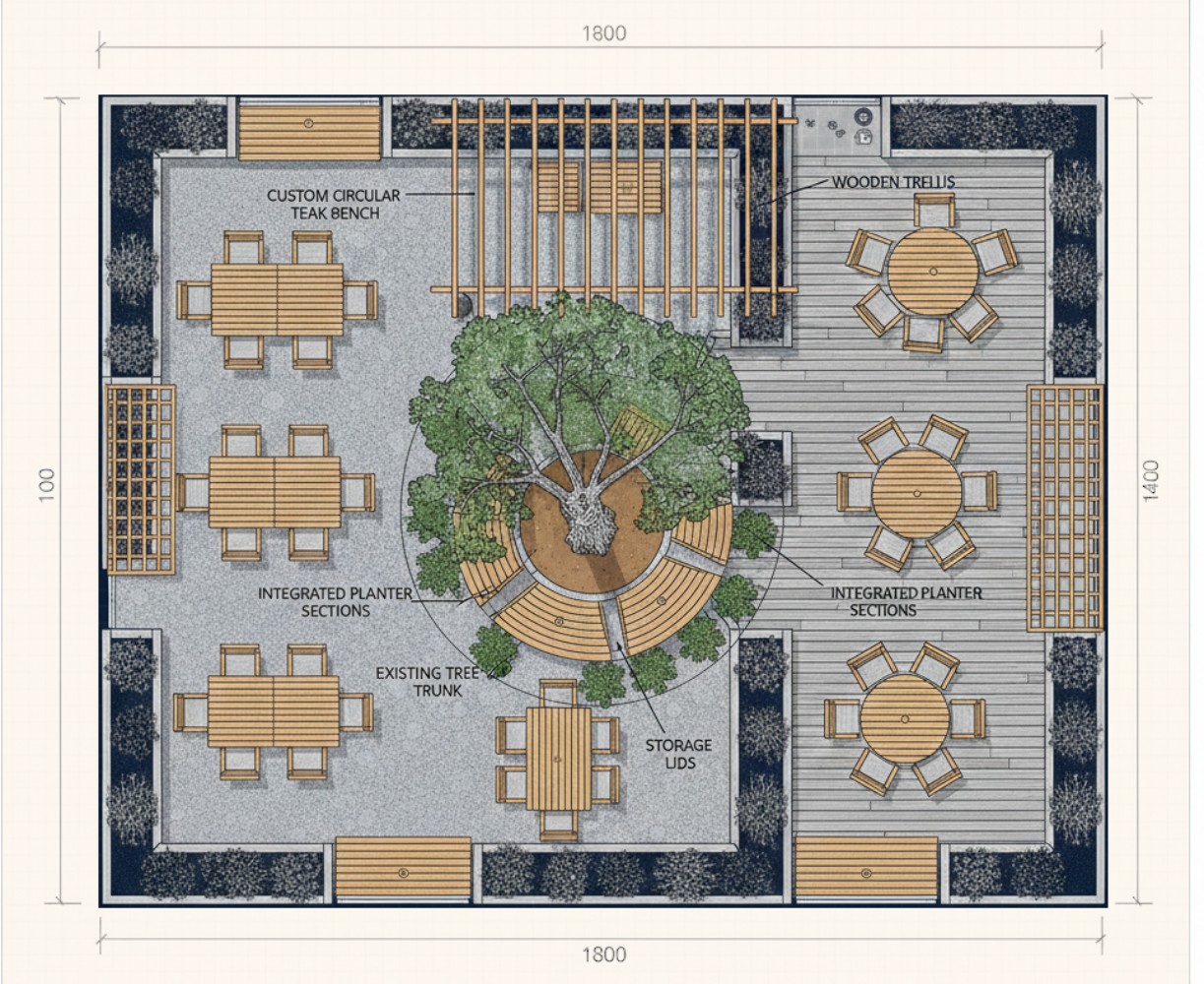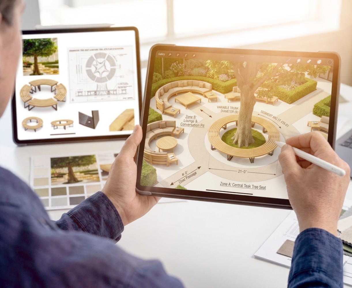 Whether developing a private garden, architectural terrace or hospitality environment, our team manages the entire process — from initial design brief and CAD drawings through to production and installation, delivering furniture tailored precisely to your space.