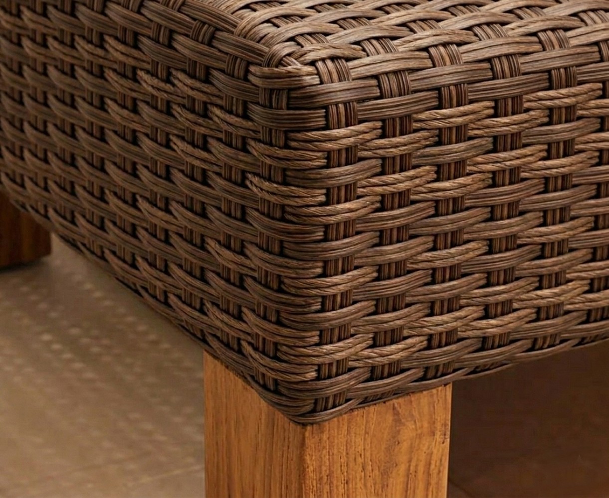 Every piece is handcrafted using premium teak, rope, natural or Rehau® rattan. As both designer and manufacturer, we control the entire production process to ensure exceptional quality.