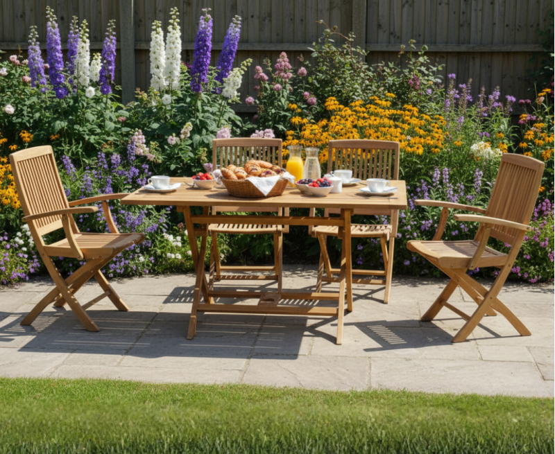 Beautifully crafted and highly functional, the Palma Teak Folding Dining Set is a versatile investment for any outdoor setting, delivering both everyday practicality and timeless style.
