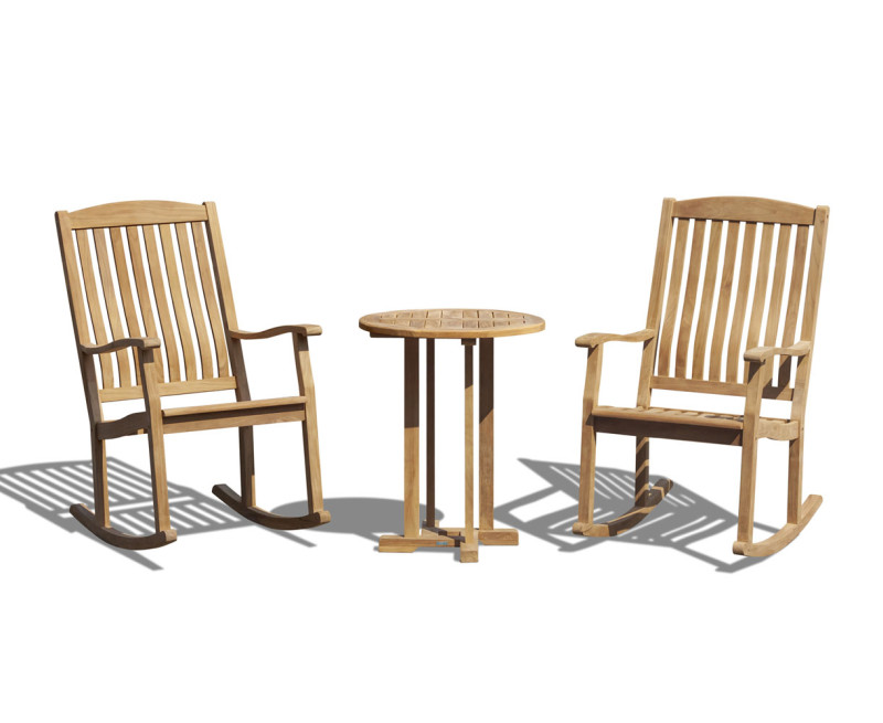 Sissinghurst Round 60cm Table and 2 Teak Rocking Chairs Set