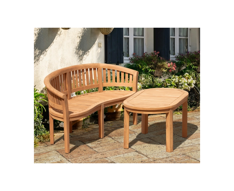 Wimbledon Teak Banana Bench and Coffee Table Set